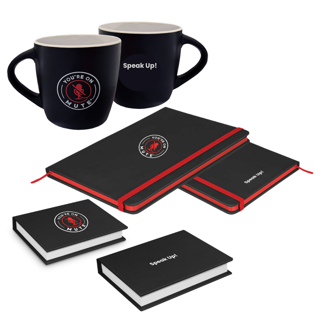Our collection of You're On Mute® merchandise includes mugs, drink bottles, notebooks, coasters, reusable cups and more. The perfect gift for yourself, a workmate or the whole team.